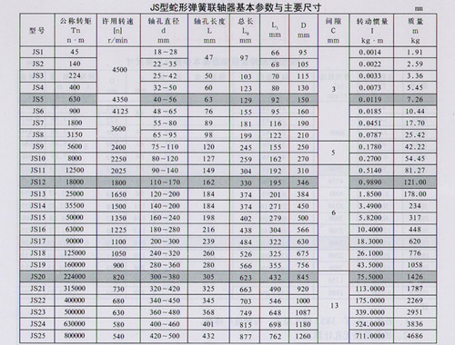 JS型蛇形彈簧聯(lián)軸器